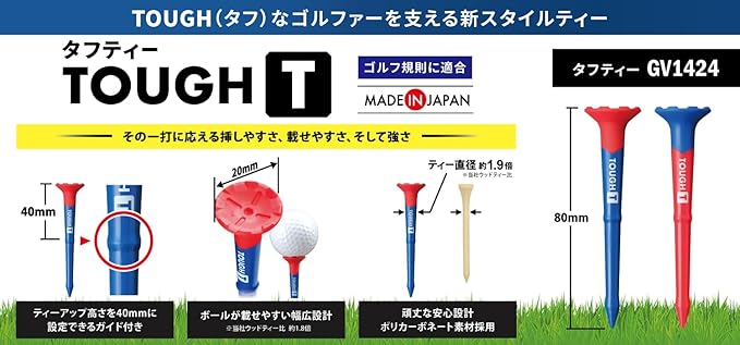Tabata(タバタ) ゴルフ 折れにくい丈夫なティー ボールが乗せやすい 高さガイド付き ゴルフ規則適合 日本製 タフティー 全長80mm/ティーアップ高さ40mm GV1424