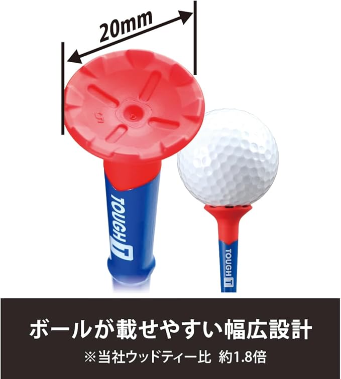 【ボールが載せやすくストレスフリー】ボールを乗せやすい幅広設計!約1.8倍*と広めの台座により、ボールが安定します。台座部分には細かい凹凸をつけることで、ボールを載せやすく、さらに振り抜きも良い仕上げになっています。*当社ウッドティー比較