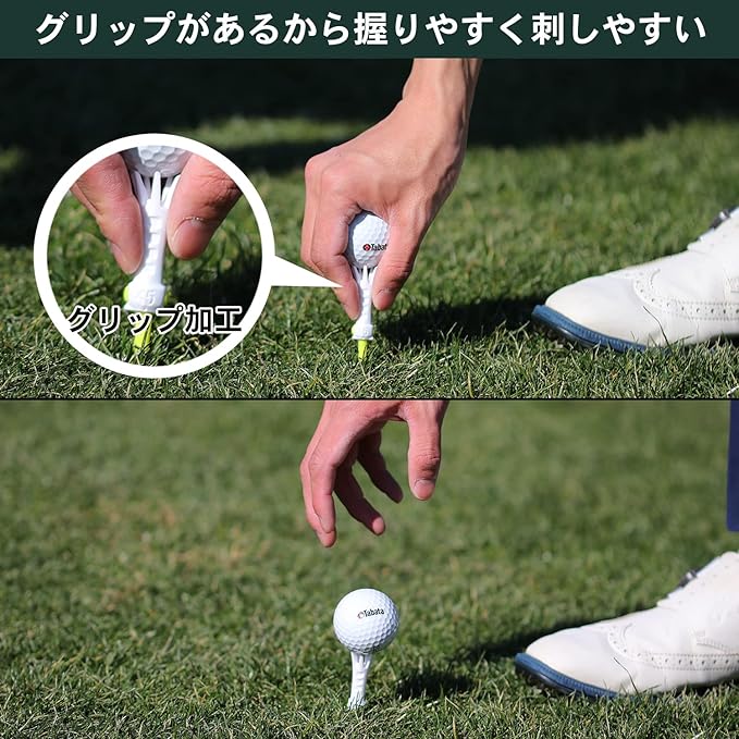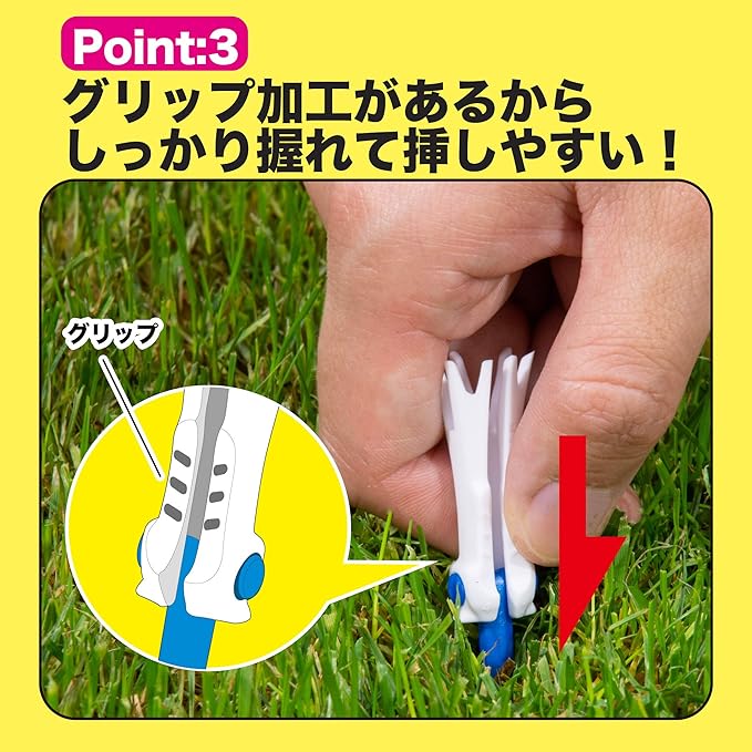 3.ヘッド部分のグリップを握ることでスムーズなティーアップでしっかり差し込み可能