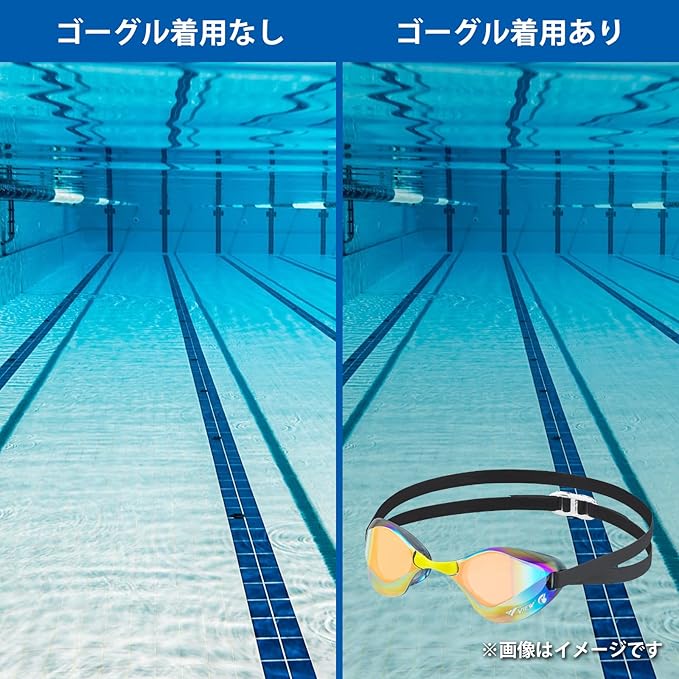 左右前方の視界を向上させることで不要なヘッドアップを抑制し、抵抗の少ない姿勢で泳げます、対象年齢:10歳~大人