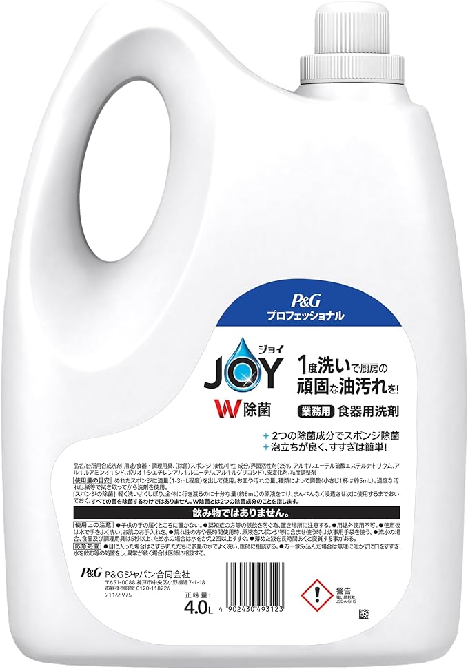 ジョイ 【大容量】 W除菌 食器用洗剤 業務用 詰め替え 4L P&Gプロフェッショナル