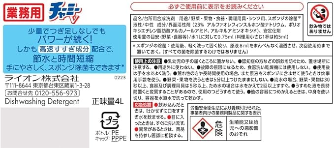 【業務用 大容量】 チャーミーV 4L 詰め替え 食器用洗剤 台所洗剤 中性洗剤 油汚れ 野菜用洗剤