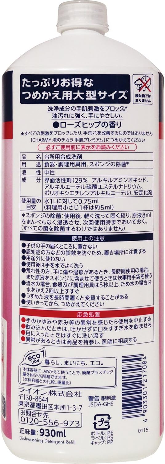 驚きの洗浄力で手肌もいたわる台所用洗剤です。 ■刺激ブロック技術によって、高い洗浄力はそのままに、洗浄成分の手肌刺激をブロックできるので、手をいたわりながら洗えます。 ■天然保湿成分(乳酸ナトリウム)を配合。 ■食器を洗った後の手肌の「しっとりした感触」で手肌へのやさしさを実感できます。 ■油汚れを分解する力強い泡が、しつこい油汚れも一度ですっきり落とします。 ■やさしいローズヒップの香りです。 ■スポンジの除菌もできます。■たっぷりお得なつめかえ用大型サイズです。(930mL)