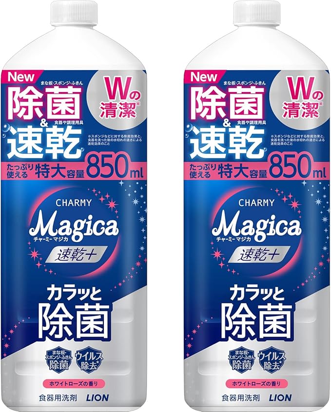 【まとめ買い】 チャーミー マジカ(CHARMY Magica) チャーミーマジカ 食器用洗剤 速乾+カラッと除菌 ホワイトローズの香り つめかえ用大型サイズ 850ml 2個
