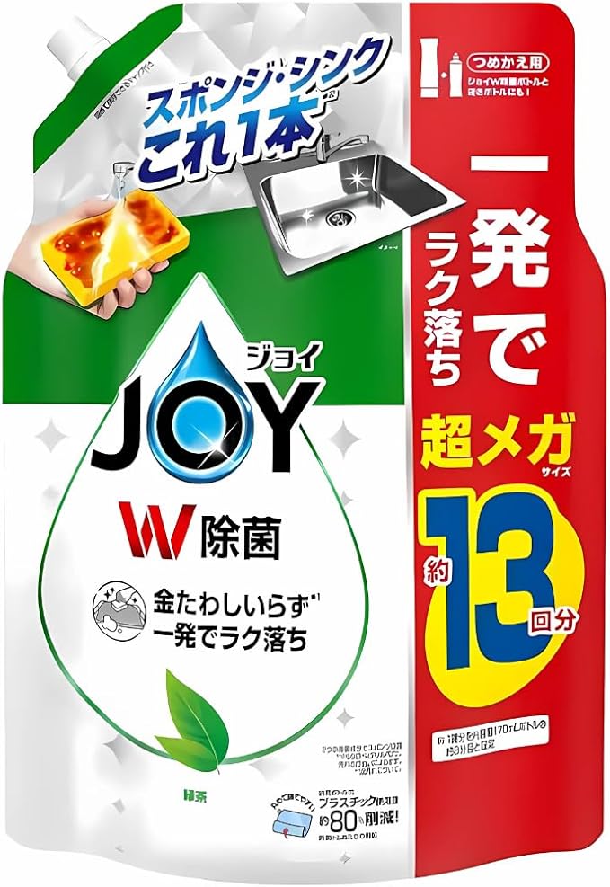 ジョイ JOY W除菌 食器用洗剤 詰め替え 緑茶の香り 詰替え 1個 液体 超特大ジャンボ aTA ma Mole ポケットティッシュ 13回分 緑茶 1,680mL