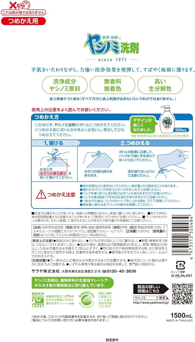 ヤシノミ洗剤 野菜・食器用 本体 500mL つめかえ用 3回分 1500mL 食器用洗剤 まとめ買い おまけつき