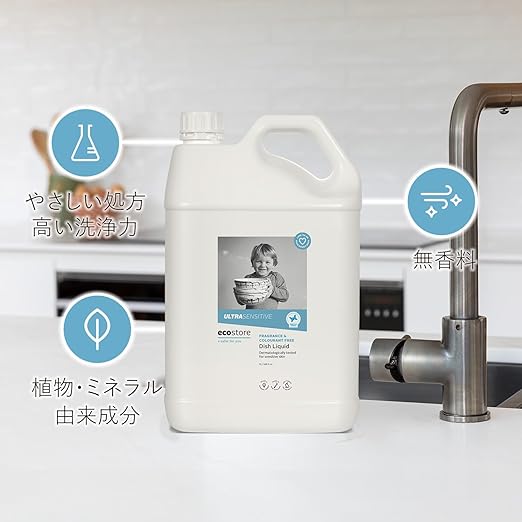 ecostore(エコストア) ディッシュウォッシュリキッド 【無香料】 5L 食器用洗剤 食器 洗剤 ウルトラセンシティブ 植物由来 肌にやさしい 大容量 詰め替え