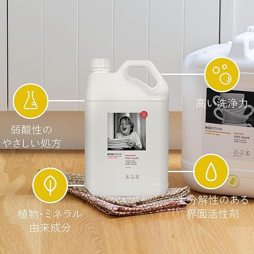 ecostore(エコストア) ディッシュウォッシュ リキッド 【グレープフルーツ】 5L 食器用洗剤 食器 洗剤 植物由来 肌にやさしい 大容量 詰め替え