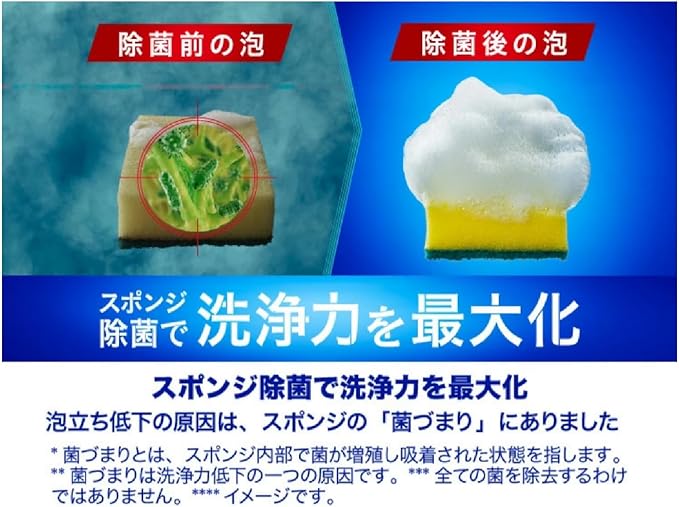 ✅●2つの除菌成分でスポンジ除菌閉めて保存できるキャップ付き超特大ジャンボサイズ 約11回分。※1回分を通常ボトル内容量170mLの約8分目と設定