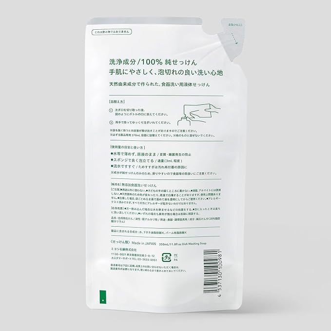 【まとめ買い】無添加 食器洗いせっけん スタンディング 詰替用 350ml【 8個】 | DREAM BRIGHT
