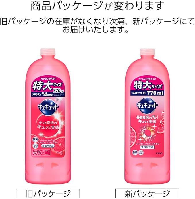 【まとめ買い】キュキュット 食器用洗剤 ピンクグレープフルーツの香り 詰め替え 770ml 2個