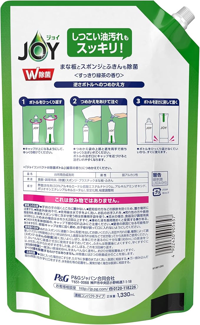 除菌ジョイ コンパクト 食器用洗剤 緑茶の香り 詰め替え 大容量 1330mL 1個