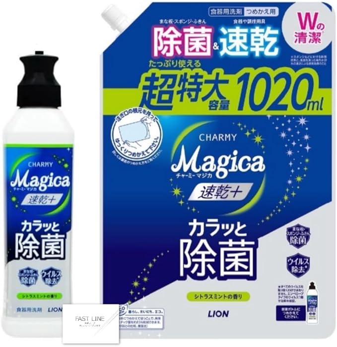 ライオン チャーミー マジカ 食器用洗剤 からっと速乾 除菌 シトラスミントの香り超特大 本体 220ml 詰め替え 1020ml