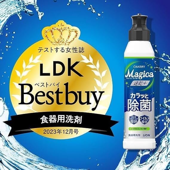【チャーミーマジカ 速乾プラスカラッと除菌 シトラスミント つめかえ用 特大の商品詳細】 ●しっかり除菌※1 できるのはもちろん、食器が速く乾き、カラッと清潔に仕上がる食器用洗剤 ●圧倒的な水切れで、食器が速く乾きます。 ●グラスが乾いた後の白い水あかができにくくなります。 ●菌が気になるふきんで拭かなくても、置いておくだけで乾いていくので、カラッと清潔な仕上がりを実感できます。 ●スポンジ、まな板、ふきんの除菌※2 ができます。 ●食器・調理用具・まな板のウイルス除去※3 ができます 。 ●油汚れがサラサラ落とせ、すすぎも手早く片づきます。 ※1 スポンジ、まな板、ふきん ※2 すべての菌を除菌するわけではありません 。 ※3 すべてのウイルスを取り除くわけではありません。エンベロープタイプのウイルス1種で効果を検証 【成分】 界面活性剤(23% アルキルアミンオキシド、アルキルエーテル硫酸エステルナトリウム、ポリオキシエチレンアルキルエーテル)、除菌剤、pH調整剤、安定化剤