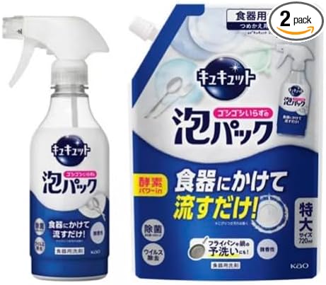 食器にかけて流すだけ!食器洗いが変わる! 食器にかけて流すだけ!* 食器洗いがゴシゴシいらずに変わる!シンクにたまった食器にまるごと泡をかけて、すすぐだけで洗えます。酵素パワーinの処方で汚れがしっかり落ちるのでかけて流すだけでキュッとした洗い上がりに。シンクの食器全体に泡をかけやすい、便利なスプレータイプ。誰でもラクに食器洗いができます。フライパンや鍋の予洗いにも便利。微香性。*こびりつき汚れは除く