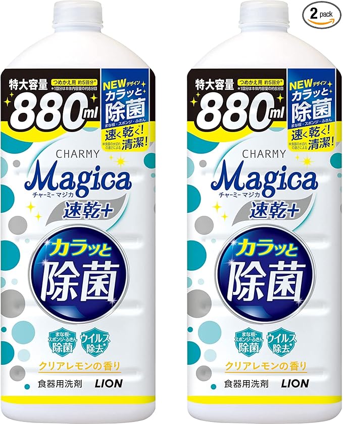 チャーミー マジカ(CHARMY Magica) 【まとめ買い】 チャーミーマジカ 食器用洗剤 速乾+カラッと除菌 クリアレモンの香り つめかえ用大型サイズ 880ml 2個