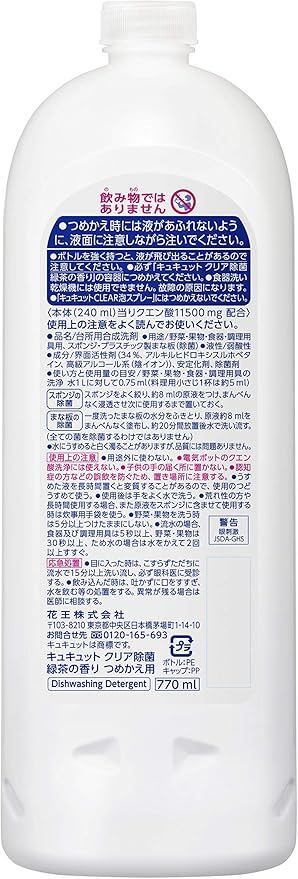 【まとめ買い】キュキュット 食器用洗剤 クリア除菌 緑茶の香り 本体 240ml + 詰め替え 770ml