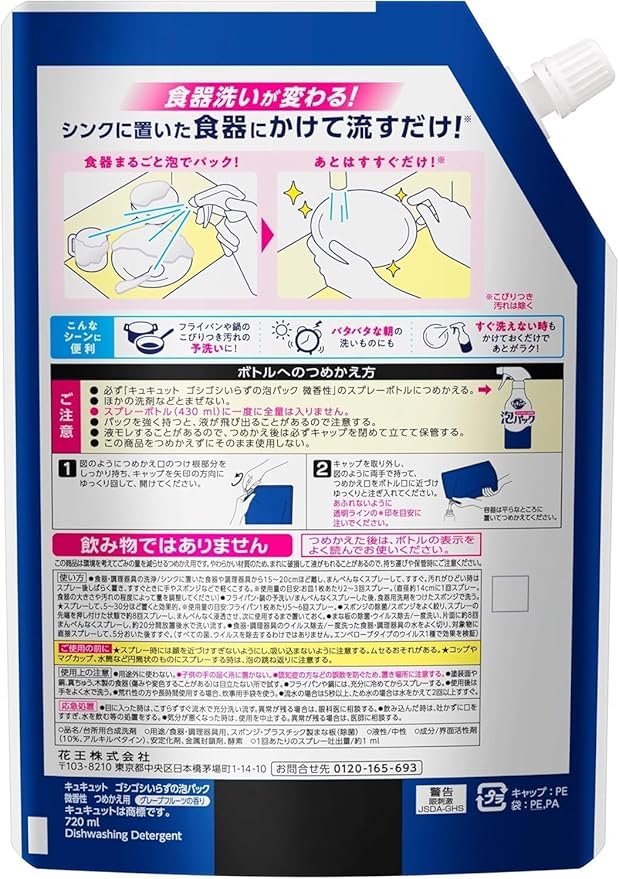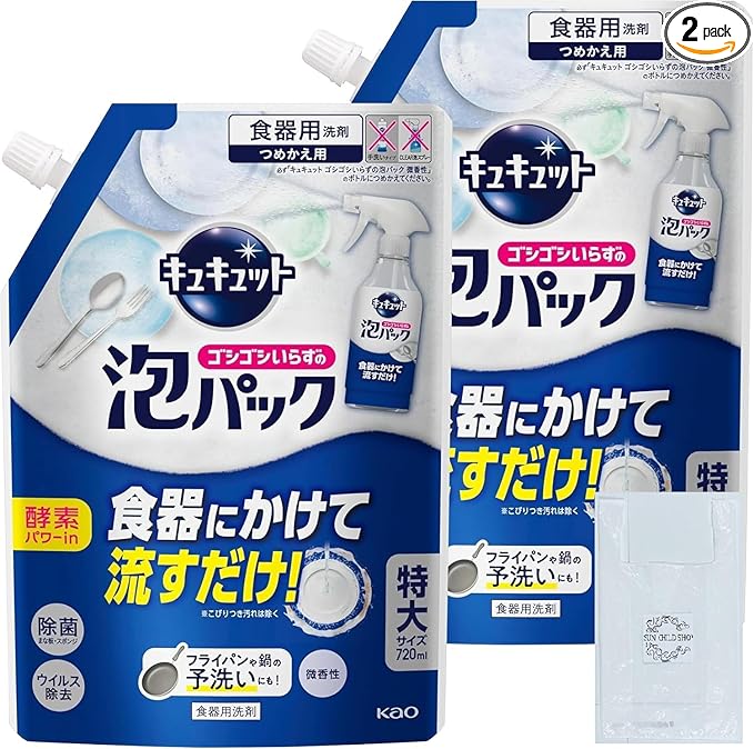 【まとめ買い】キュ キュット ゴシゴシいらずの泡 パック 微香性 詰め替え用720ml 2個 食器用洗剤 洗剤 簡単 流すだけ グレープフルーツの香り 【オリジナルレジ袋1枚付】お試し