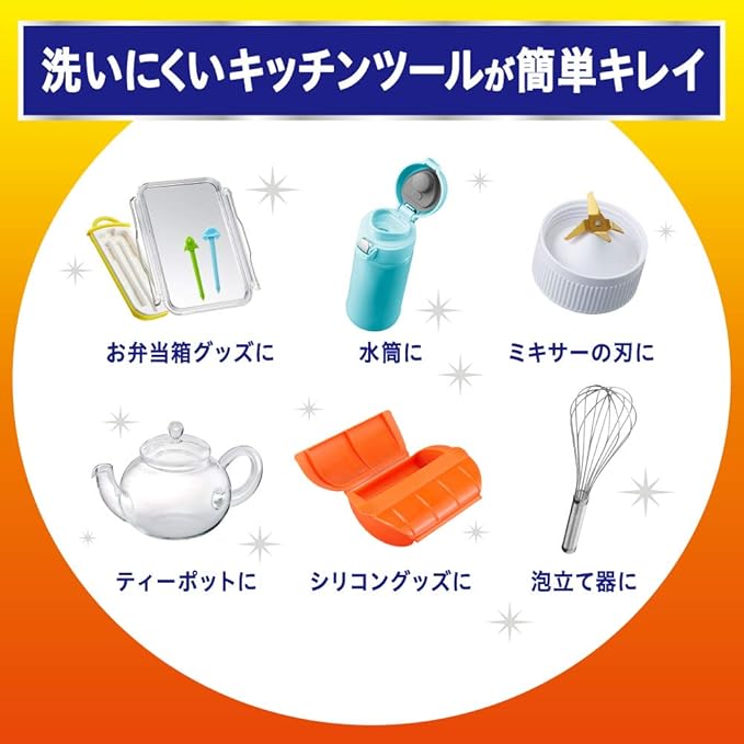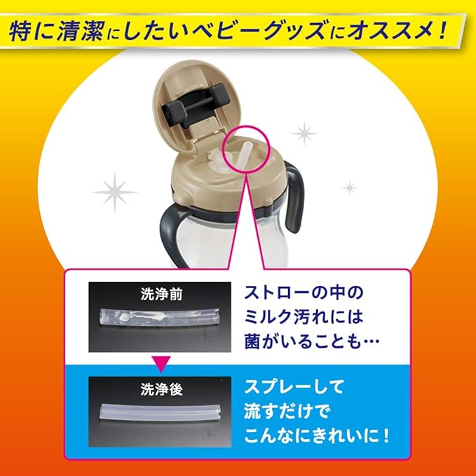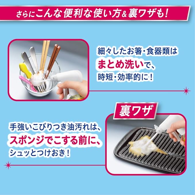 スポンジが届かない汚れをすみずみ清潔! 奥、ミゾ、スキマの汚れもスプレーして流すだけ! 洗いにくい様々な食器類(水筒、プラスチック容器のフタ、ベビー用ストローマグなど)にオススメです。 スプレーヘッドはポイントを狙いやすく、飛び散りにくい設計。 油汚れも泡がパチパチはじけながらみるみる分解! 1本で除菌※・消臭・くすみ落としの3つの効果。 ※全ての菌を除菌するわけではありません。 グレープフルーツの香り。