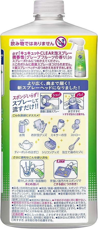 キュキュット クリア泡スプレー 食器用洗剤 グレープフルーツの香り 詰め替え 720ml