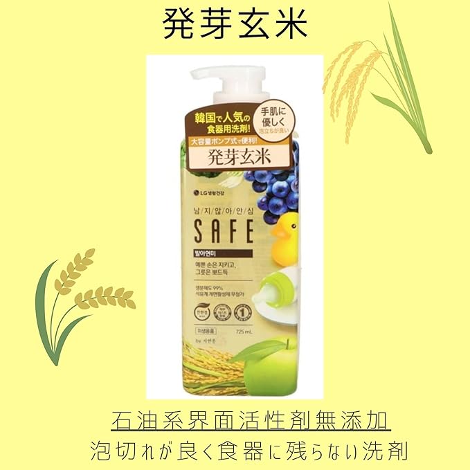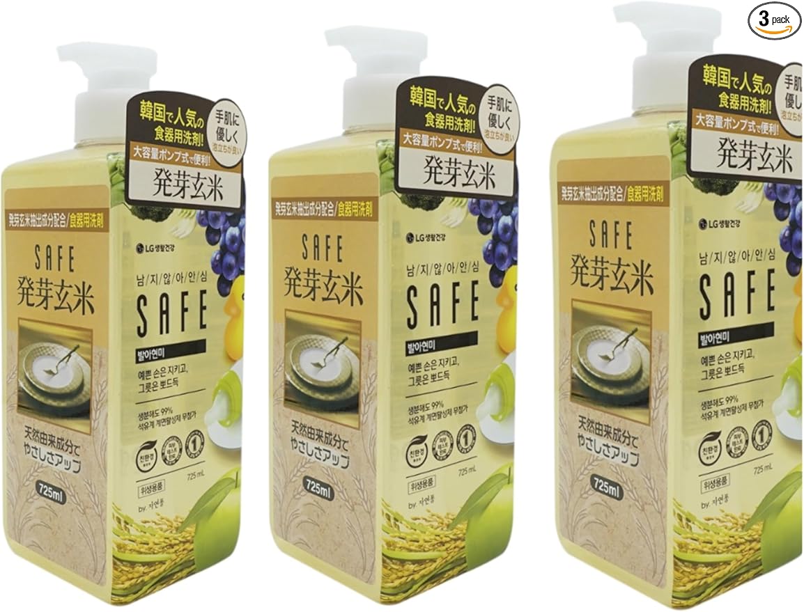 【まとめ売り】セーフ SAFE 発芽玄米食器洗剤 本体 725ml 3個 韓国で人気 天然油脂由来の成分を配合した食器用洗剤 サンキューシール付きJOYBストアオリジナル