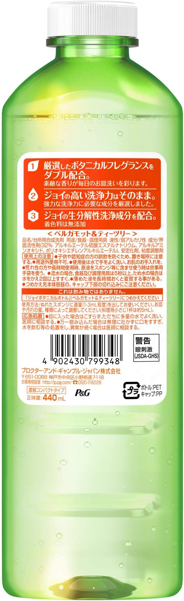 ジョイ ボタニカル 食器用洗剤 ベルガモット&ティーツリー 詰め替え 440mL