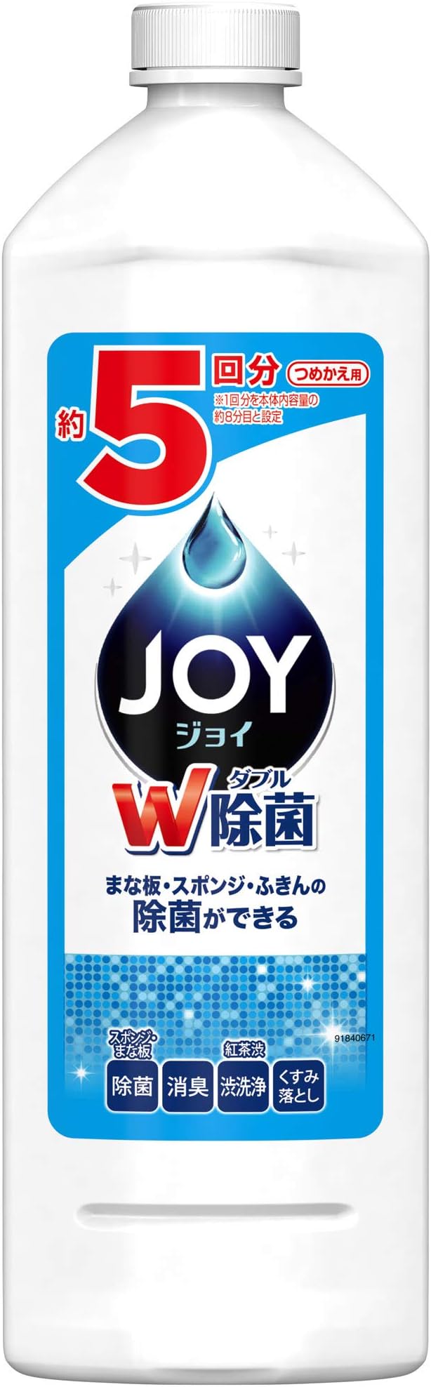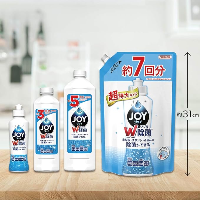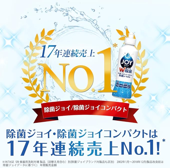 ・99.9%除菌でスポンジ・まな板・ふきんの除菌ができる、移り菌を防ぐ。 ・菌のエサとなる油汚れまで徹底洗浄。 ・ジョイコンパクト史上最高の洗浄力で、頑固な汚れも一度洗いでするっと落とす。食器用洗剤(洗洁精) ジョイ。 ・丈夫な泡が長持ち。継ぎ足しなしでもたくさん洗える。 ・泡切れが早く、すすぎも時短に。 ・お得なつめかえ5回分サイズ ・食器用洗剤(洗洁精) ジョイ。
