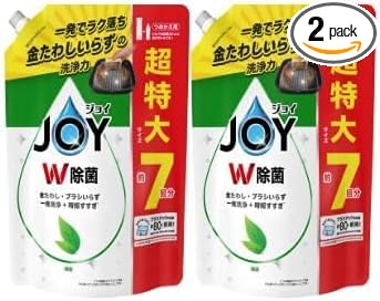ジョイ W除菌食器用洗剤の詰め替え用セットは、日常の食器洗いをより効果的にする優れた選択肢です。さわやかな緑茶の香りが特徴で、キッチンに心地よい雰囲気をもたらします。2袋セットで合計1,820mlという大容量パックは、経済的で長期間使用できます。各袋930mlで使いやすい量となっています。油汚れもスッキリ落とし、食器の輝きを保ちます。泡立ちが良く、少量でもしっかりと洗え、すすぎも簡単です。手肌にも優しい処方で、毎日の食器洗いに安心してお使いいただけます。詰め替え用パックは使いやすい設計で、本体ボトルへの移し替えもスムーズです。食後の片付けを効率的にこなしたい方におすすめの洗剤です。