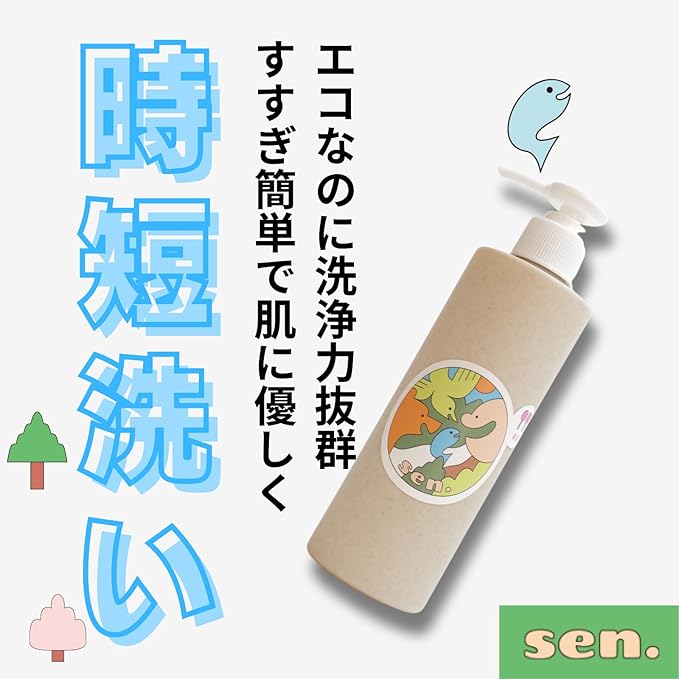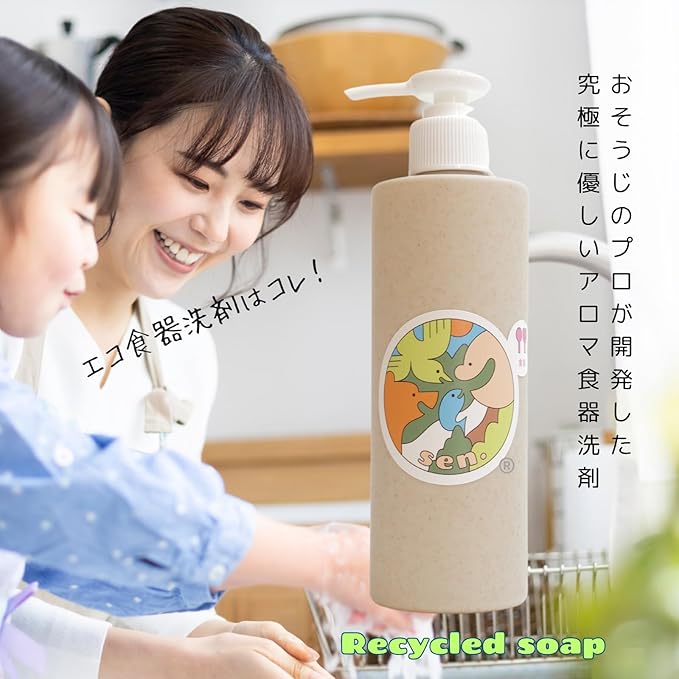 sen.リサイクル食器用洗剤[合成界面活性剤不使用 オーガニック 手荒れ防止 犬 猫 ペット用にも 弱アルカリ性 哺乳瓶 ポンプタイプ すすぎの残しも安全 リサイクル石鹸配合 服の黄ばみ シミ 黒ずみ 浮かせる 血液除去 環境に優しい 食中毒 除菌]