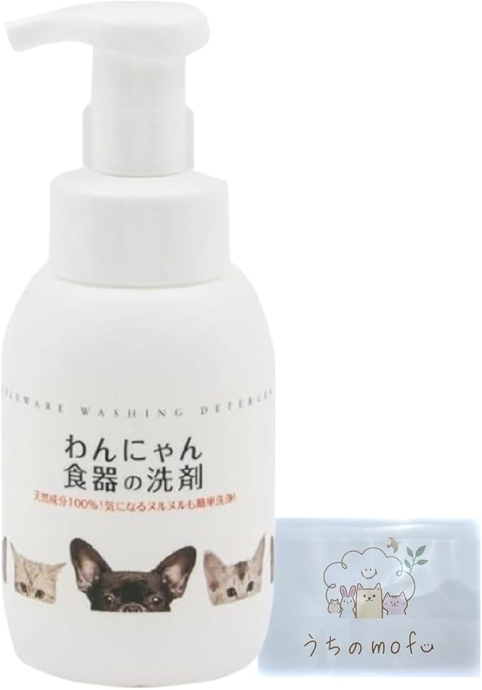 わんにゃん食器の洗剤 本体 300ml 1個 猫用食器洗剤 食器洗剤 洗剤 食器 ペット 犬 猫 ペット用食器洗剤 泡タイプ 天然成分100% + うちのmofu限定ポケットティッシュ付き