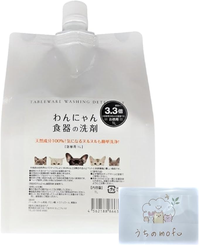 わんにゃん食器の洗剤 詰め替え 1L 1個 ペット用食器洗剤 泡タイプ 天然成分100% + うちのmofu限定カード付き
