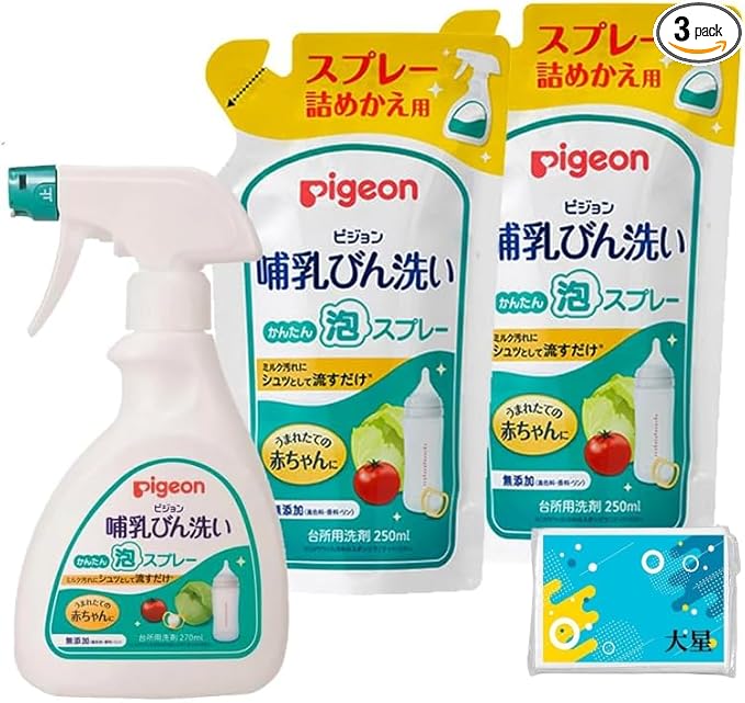 【本体1本&替え2袋セット】哺乳びん洗い かんたん泡スプレー + おまけ付き(オリジナルオリジナルテッシュ)