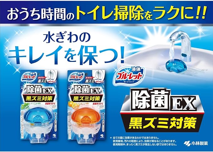 除菌率99%*1で、水ぎわの黒ズミの発生を抑え*2、お掃除が楽になります。*1 水ぎわの黒ズミ原因菌への効果。全ての菌を除菌する訳ではない。当社の実験室内の検証結果による。*2 使用期間中、まったく黒ズミが発生しない訳ではない。