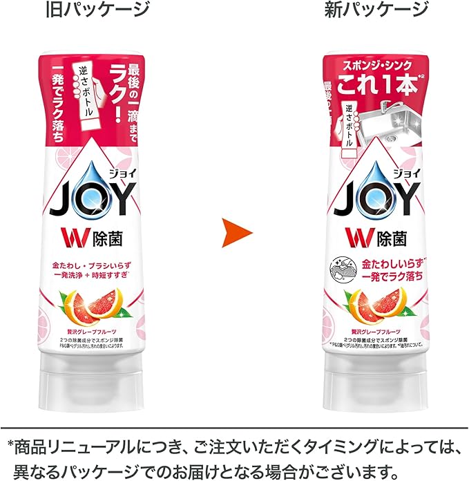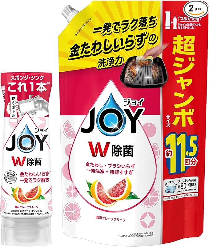 ジョイ 【まとめ買い】 W除菌 食器用洗剤 贅沢グレープフルーツ 逆さボトル 290mL + 詰め替え 超特大ジャンボ 1490mL