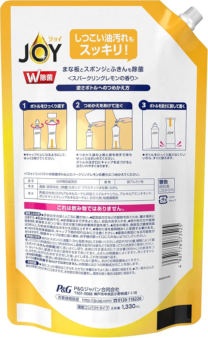 ジョイ W除菌 ジョイコンパクト スパークリングレモンの香り 詰め替え ジャンボサイズ 1330mL