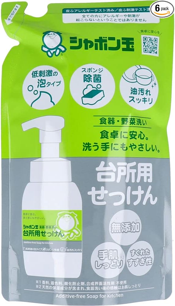 なごみCompany 台所用石けん シャボン玉 泡タイプ 食器/野菜洗い用 詰替用 275mL X6パック