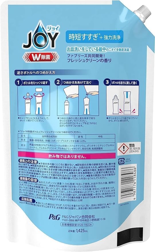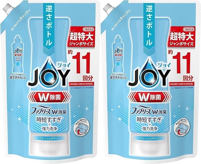 【まとめ買い】P&G ジョイ コンパクト W除菌 食器用洗剤 W消臭 フレッシュクリーン 詰め替え 台所用合成洗剤 ジャンボサイズ 1425mL 2個