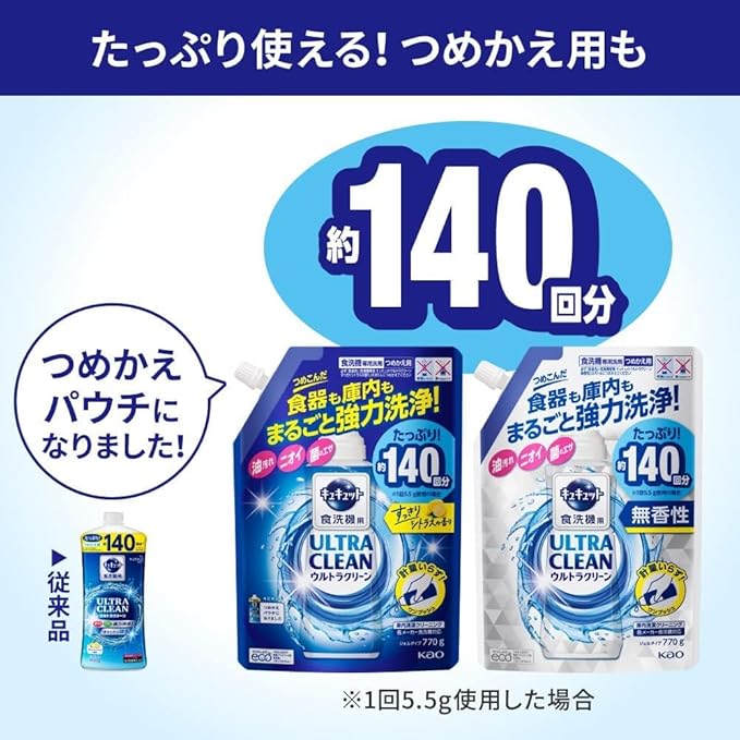 キュキュット ウルトラクリーン 食洗機用 洗剤 強力洗浄 シトラスの香り 食洗機用キュキュット史上最強の洗浄力を実現します。 脂汚れ・ニオイ強力洗浄します! 透きとおる輝きです。 さらに、ごはんも、たまごも、くもりもニオイもスッキリします。 透きとおる輝きになります。 油汚れが食器や庫内に汚れ移りするのを防ぎ、庫内清潔クリーニングします。 ワンプッシュするだけで1回分を適量投入できる本体ボトルです。 すっきりシトラスの香りです。 ◆今まで落とし切れなかったしつこく残るヌルつき脂汚れまで強力洗浄 ◆ニオイもスッキリ除臭⇒くすみのない透きとおる輝きに ◆片手でワンプッシュ簡単計量