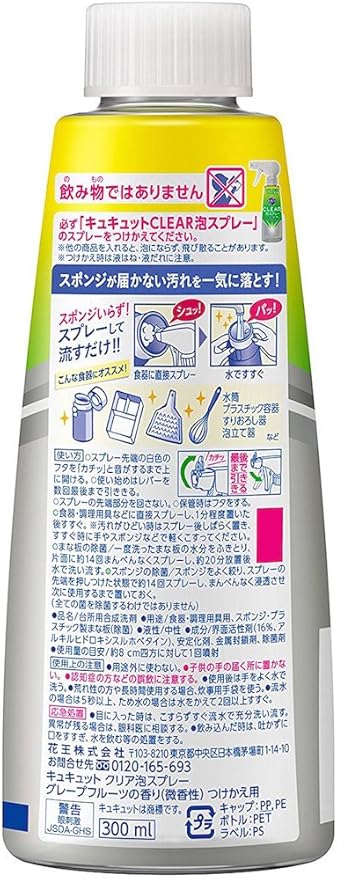 グレープフルーツ香る『キュキュット CLEAR泡スプレー グレープフルーツ つけかえ用 300ml 』を 2個セットにして、迅速にお届けいたします。