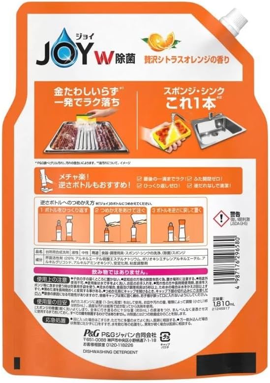 JOY ジョイ オレンジ つめかえ用 1810ml 食器用洗剤 テラサイズ 大容量 詰替 洗剤 W除菌 エコ 贅沢シトラスオレンジ 71208