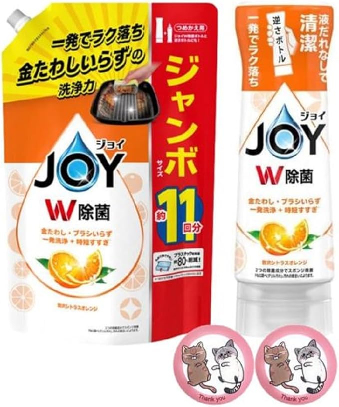 【大容量セット】ジョイ W除菌 食器用洗剤 シトラスオレンジ 逆さボトル 290mL / 詰替 超特大ジャンボ 1425mL 油汚れ 除菌 消臭 キッチン用洗剤 ※CRYSTAL POT オリジナルギフトシール付き ランダム1枚