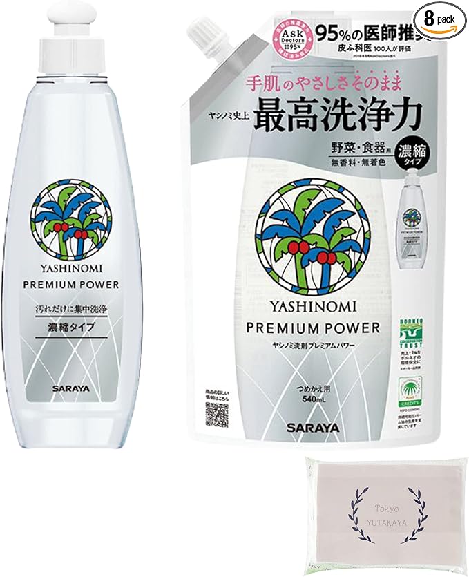 ヤシノミ洗剤 プレミアムパワー 本体200ml 詰替え540ml セット オリジナルペーパータオル(4枚重ね8枚入)