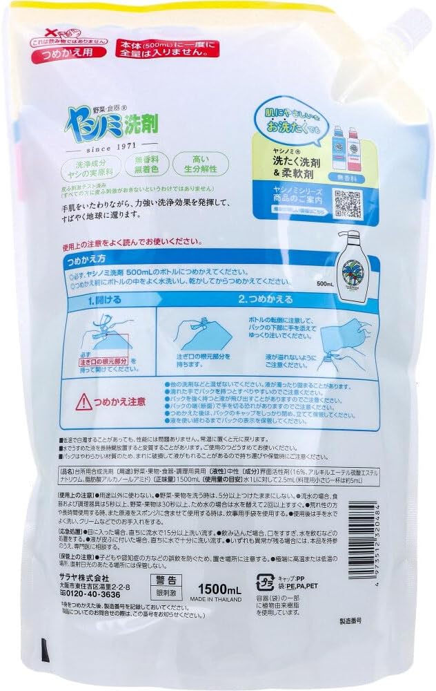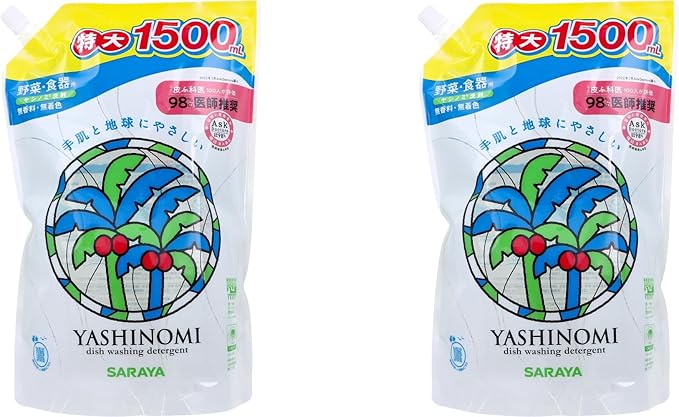 ヤシノミ洗剤 野菜・食器用 詰替用 特大 1500mL 食器用 油汚れ対策 手肌にやさしい 植物由来成分 中性 無香料 無着色 無添加 野菜も洗える キッチン用 台所清掃用品 (詰替用1500mL 2パック)