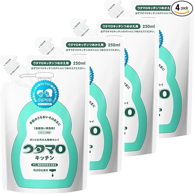ウタマロキッチン 詰替え 250ml 4個|食器用洗剤|ガンコな油汚れスッキリ|手荒れしにくいアミノ酸系|スポンジ除菌対応