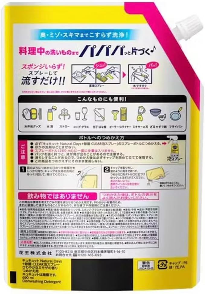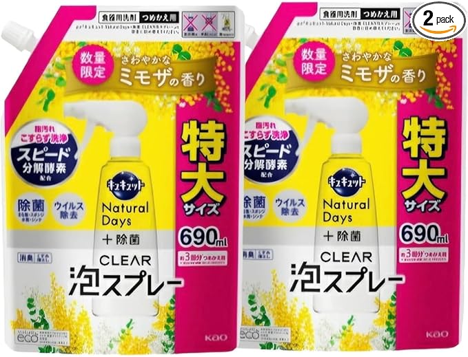 キュキュット 食器用洗剤 Natural Days+ 除菌 CLEAR 泡スプレー ミモザの香り(2袋セット)