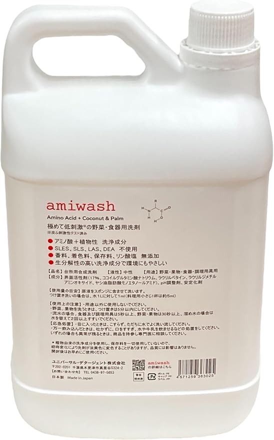 極めて低刺激の野菜・果物・食器用洗剤 amiwash 2000ml詰替用