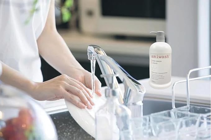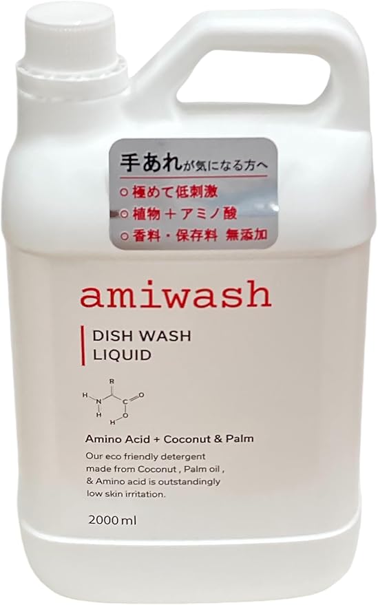 人の皮膚、毛髪などの身体を構成するタンパク質である「アミノ酸」からつくられた洗浄成分と、パーム油由来の「植物性洗浄成分」を配合したアミウォッシュ。油汚れに強い優れた洗浄力を発揮しながら、手肌に与える刺激は極めて低い「安心・安全」を追及した新しい食器用洗剤です。