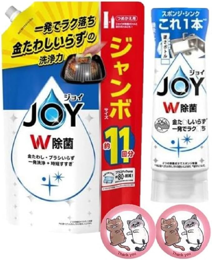 【大容量セット】ジョイ W除菌 食器用洗剤 さわやか微香 逆さボトル 290mL / 詰替 超特大ジャンボ 1425mL 油汚れ 除菌 消臭 キッチン用洗剤 ※CRYSTAL POT オリジナルギフトシール付き ランダム1枚
