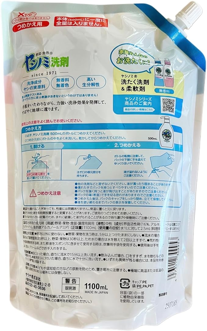 サラヤ ヤシノミ洗剤 野菜 食器用 洗剤 液体 無香料 詰め替え 1100ml 2袋セット+おまけ付き