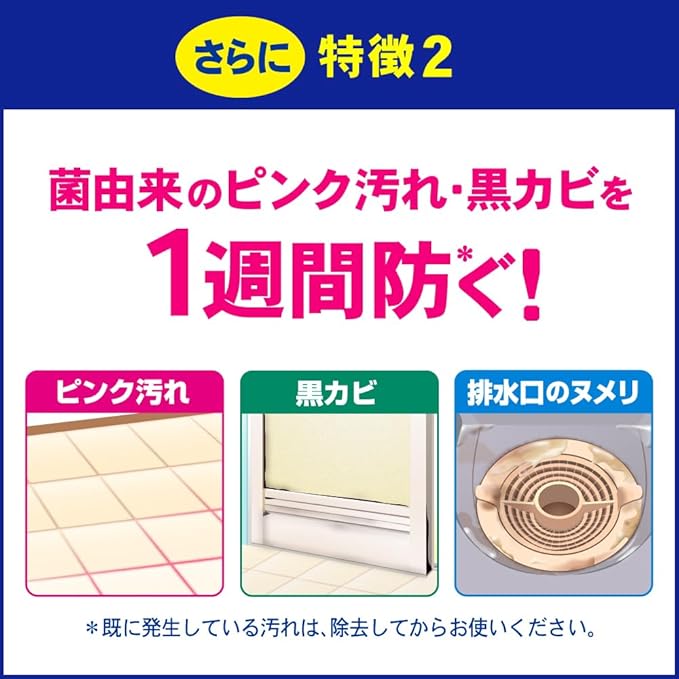 洗浄はもちろん、ピンク汚れ・黒カビを1週間防ぐ(※1)浴そうの抗菌(※2)・ウイルス除去(※3)まで。